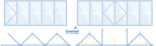 Everest bi-folding doors can be made in different sizes and configurations. From a minimum of 1.4m across two panels, to a maximum width of 6.2m across seven panels. We manufacture and install aluminium bi-fold doors which offer the slimmest profile and a sleek contemporary look.