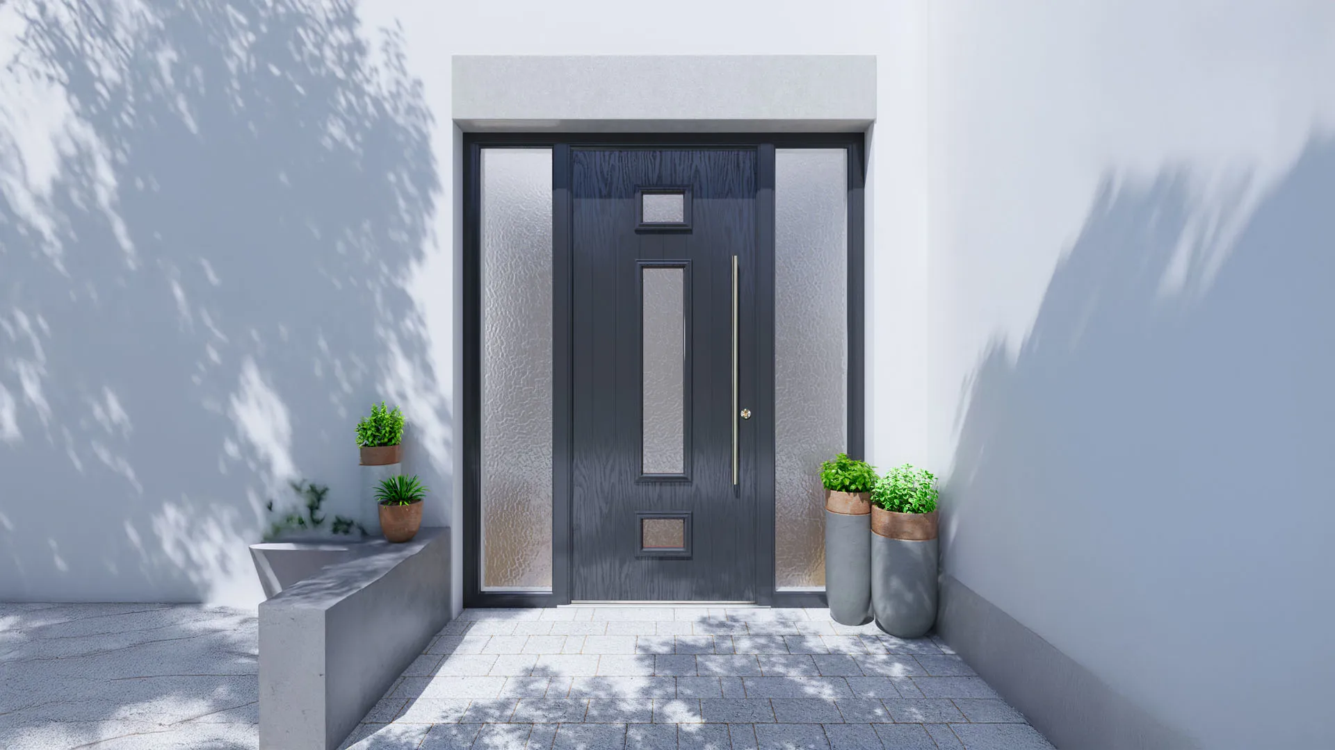 Choose from popular uPVC front doors, secure composite front doors, contemporary aluminium front doors or traditional wooden front doors. All doors are available in different panel configurations, with or without glazing and with a variety of front door furniture.