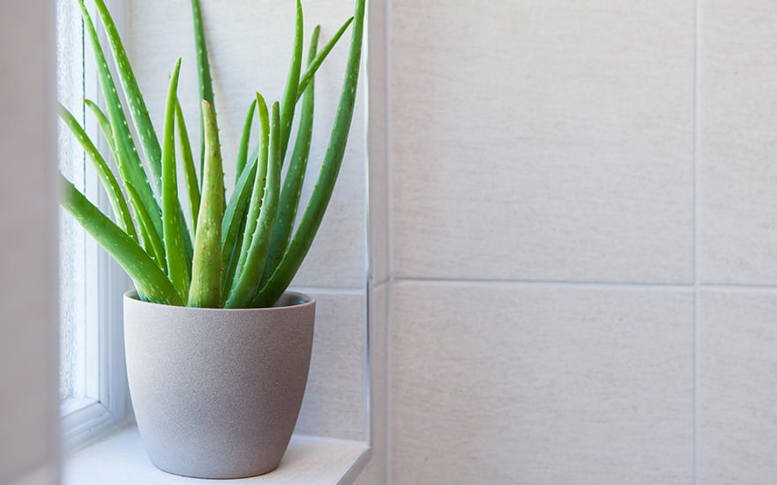 Because of its natural adaptations to store water, Aloe Vera can be especially useful in bathrooms or kitchens to help reduce excess humidity.
