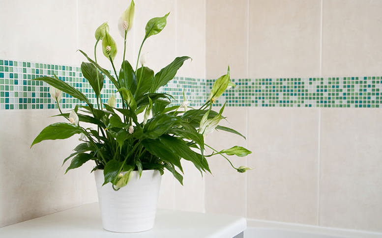 They can also work well to reduce humidity and thrive in damp conditions, with their soil needing to be moist but not overly wet. You also don’t need to worry too much about light levels, as Peace Lilies are happy in lower-light environments or under fluorescent lighting.
