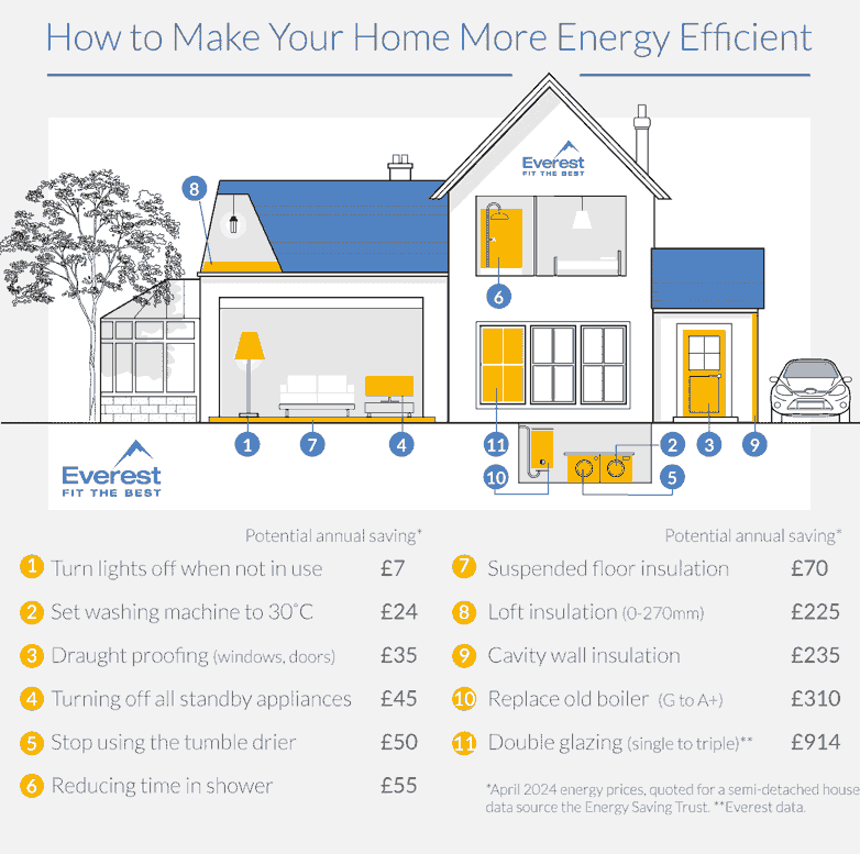 To make your home more energy efficient, there are five key areas to review and improve: