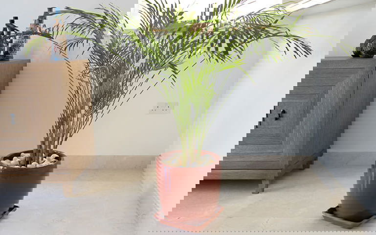 Caring for palms typically involves providing them with bright, indirect light and ensuring consistent watering to keep the soil evenly moist. With their adaptability and natural moisture-regulating abilities, palms can thrive in various indoor settings.