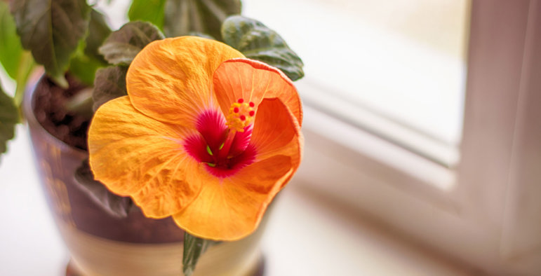 Native to China, hibiscus needs to be kept in a warm, bright room away from direct sunlight. Given its tropical background, it likes high humidity, so should be kept on a tray of damp gravel or grouped together with other plants to create a moist microclimate. Bathrooms with plenty of light are a good spot.
