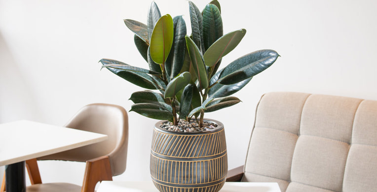 Rubber plants have large, glossy dark green leaves and can grow into tall, elegant houseplants. They are named after their milky latex sap, which was historically used to make rubber. As houseplants, they can remove toxins, helping to purify the air in your home.