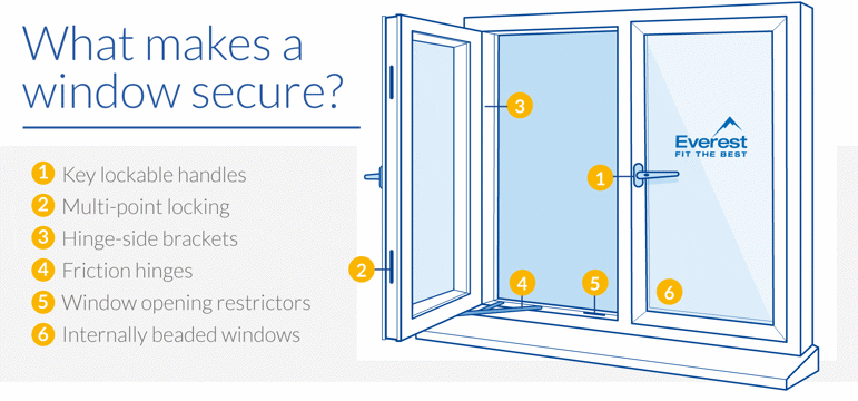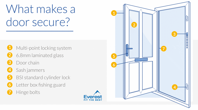 Everest does not supply sash jammers or hinge bolts. Letterbox fishing guards and door chains are an optional extra.