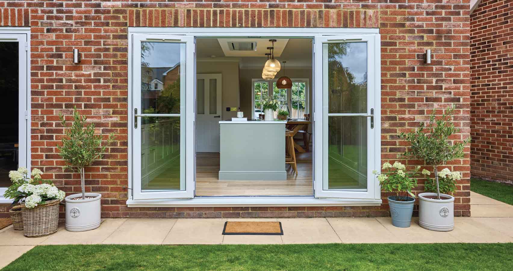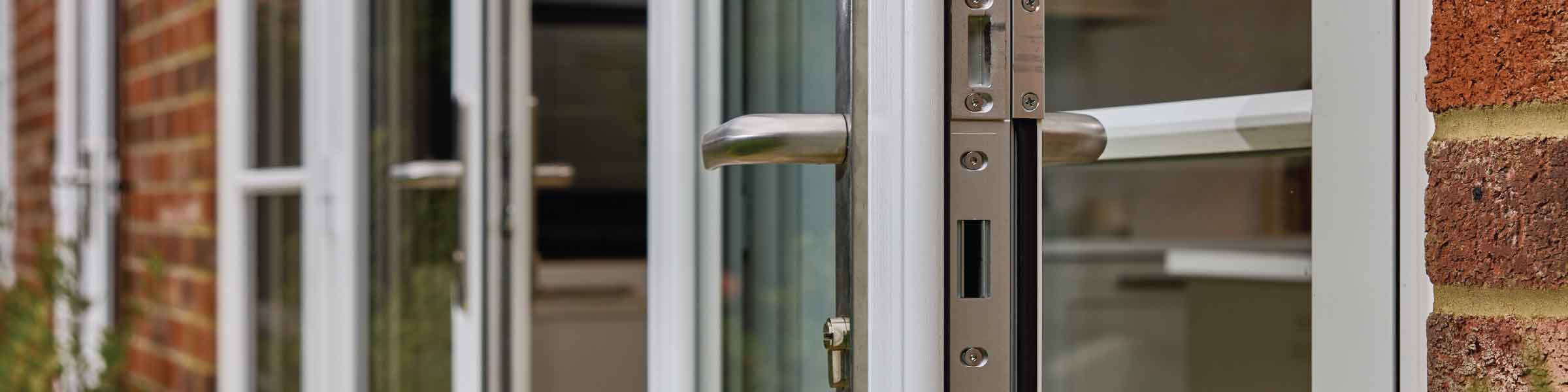 We installed 12 new Flush casement windows in white woodgrain, and 2 pairs of matched Flush uPVC French doors one pair with side panels in Danbury, November 2025.