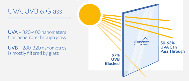Ultraviolet B (UVB) has a shorter wavelength of 280-320 nanometres and is known for skin burning. UVB can be filtered by cloud cover and glass.