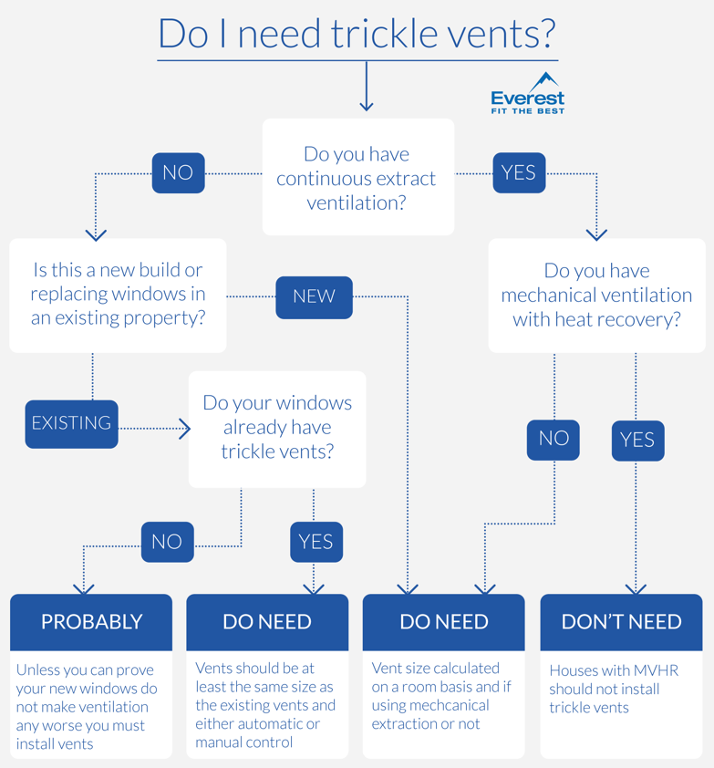 Background ventilators are required on most replacement and new windows under Building Regulations.